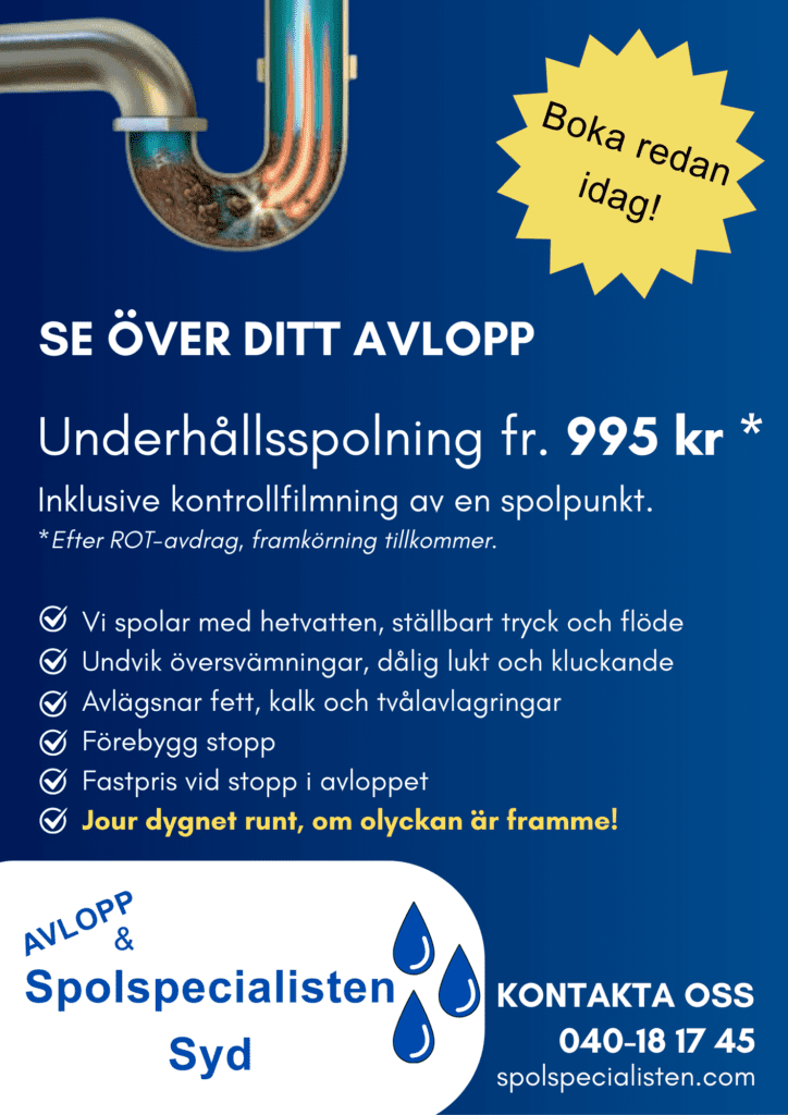 Vi utför planerade och akuta spolningar av avlopp.