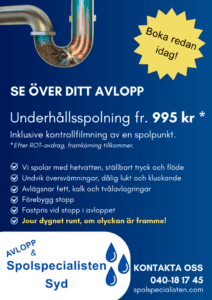 Vi utför planerade och akuta spolningar av avlopp. Under mässan erbjuder vi underhållsspolning med kontrollfilmning av en spolpunkt till ett fördelaktigt pris. Var med i vår tävling! Besök vår monter där du har chans att vinna en underhållsspolning. Vi drar 1 vinnare varje dag! Vi kommer även ha fina erbjudande på takbehandlingar!