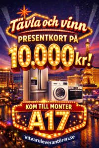 Kom till vår monter A17 och tävla om ett presentkort på 10.000 kr som du kan använda på Elgiganten. Vi är Skånes nya leverantör av vitvaror! Vi hjälper dig med installation och service. Kom förbi och få råd och tips. Vi ses!